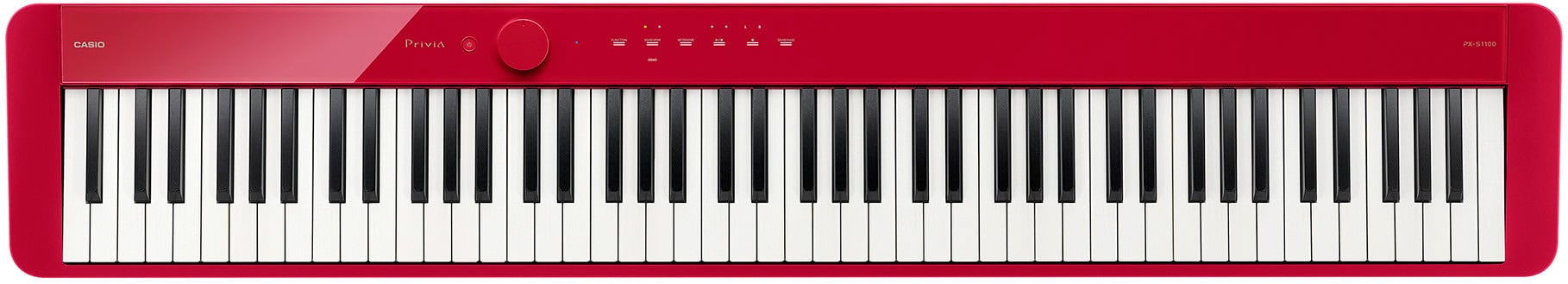 Casio PX-S1100 i rød er et slankt stagepiano med 88 vægtede tangenter, Bluetooth og realistisk klaverfølelse. Perfekt til hjem, studie og livebrug med fleksibel opsætning.