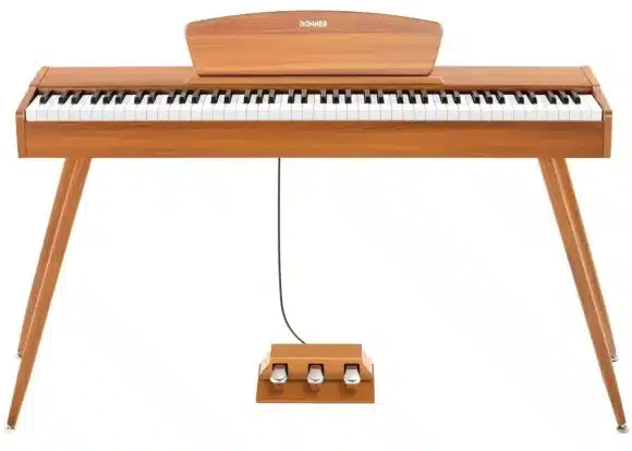 Donner DDP-80 MKII i et flot trædesign er en opdateret udgave af DDP-80 med en forbedret DREAM-lydchip, seks udvalgte klaver- og strygerlyde samt et realistisk hammervægtet klaviatur.Â