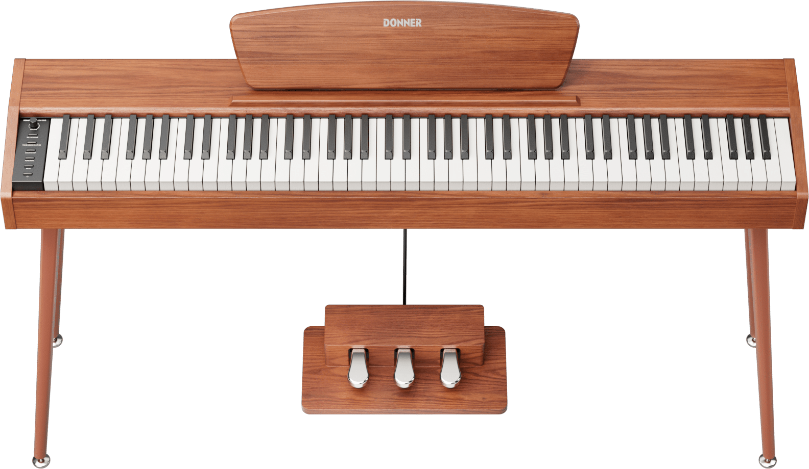 Donner DHP-100 Pro i træ-finish bygger videre på idéerne fra DDP-60, men løfter oplevelsen markant med fuldt vægtet tangenter, bedre touch og moderne tilslutninger som Bluetooth og Midi.Â