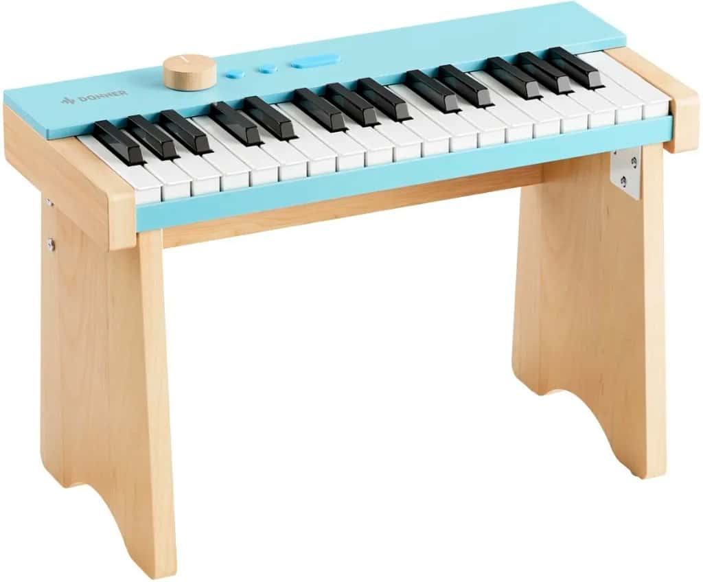 Donner KIDO V-10 børne el-klaver i lys blå med Bluetooth, lyde og sange er perfekt til børn 3 – 6 år, der vil lære musik gennem leg og kreativ udfoldelse.