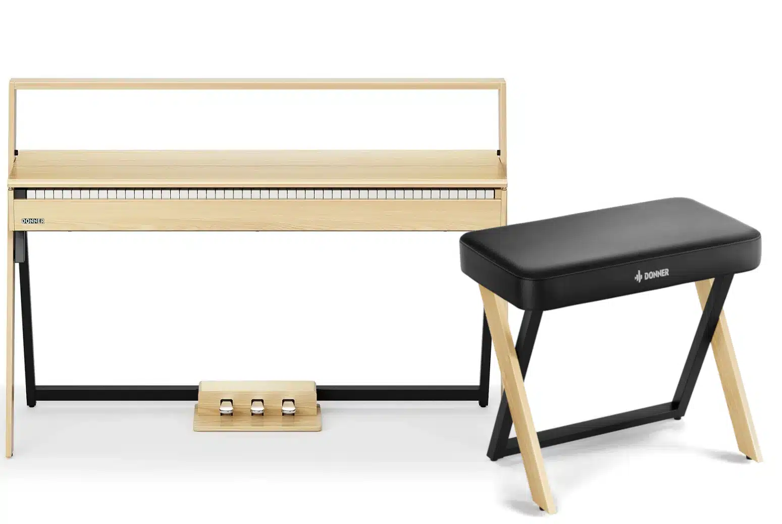 Denne bundle indeholder Donner Oura R300 i light wood finish og Donner DKB-300 Klaverbænk i samme finish. Â